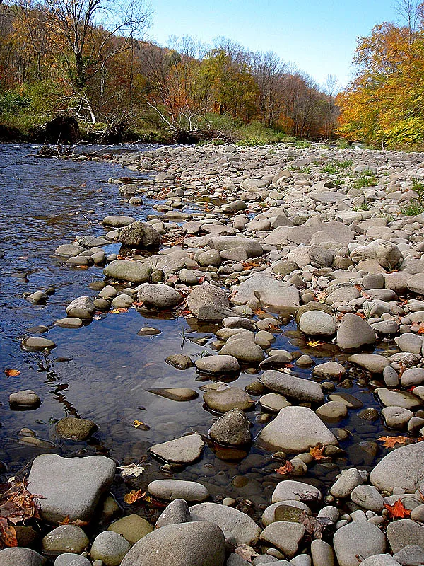 The combination of low water levels and the scouring floods of recent years leaves plenty of exposed rocks along the shores in the Catskills. This will not help water temps in upcoming seasons.